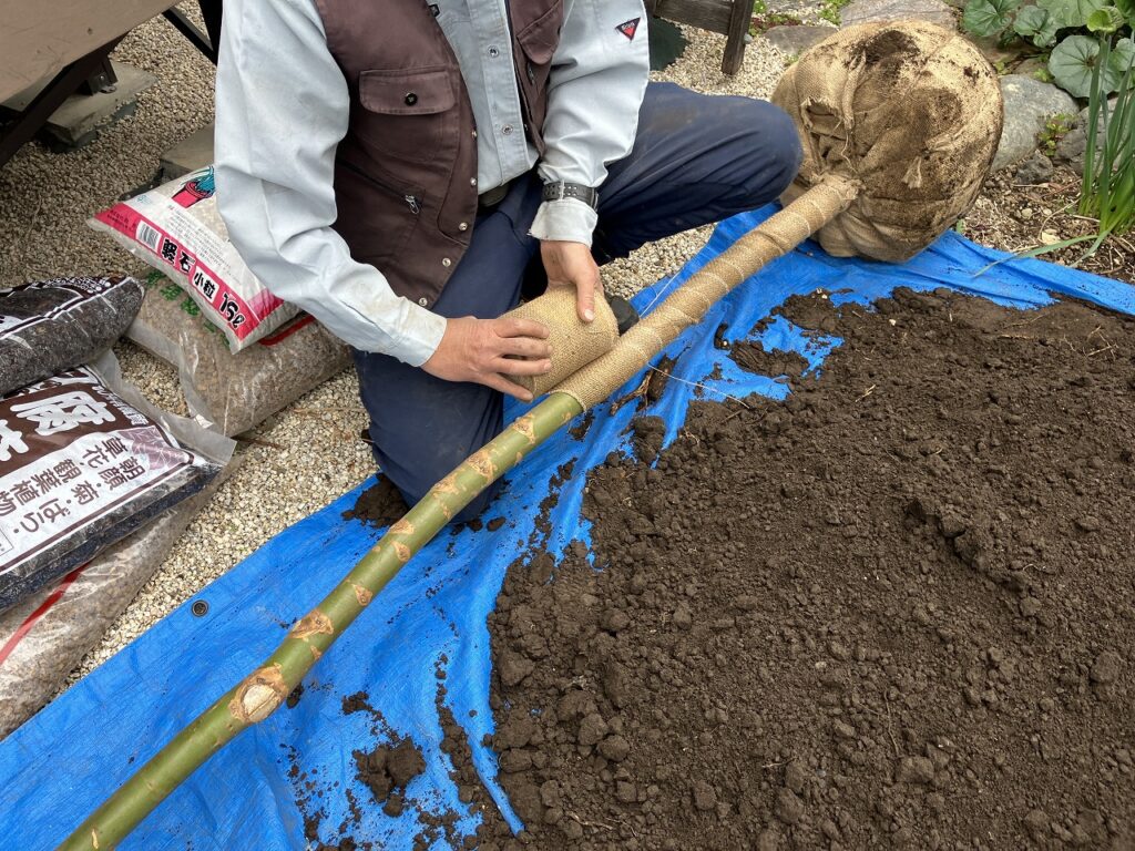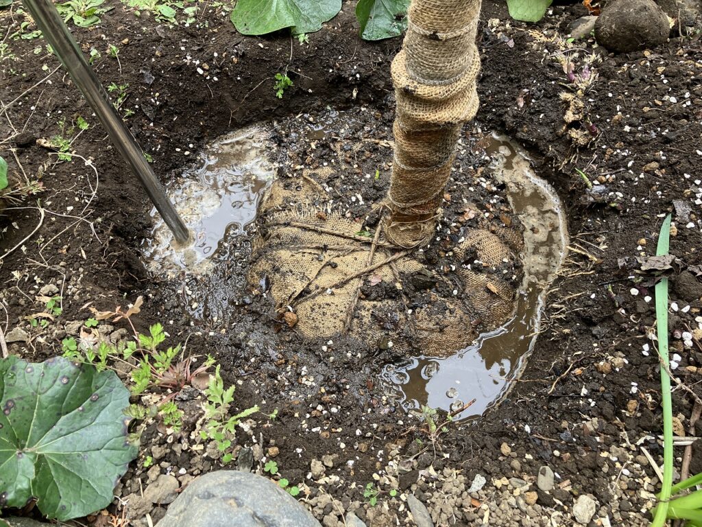 水極めを行うことで根鉢と土の隙間が埋まり水の吸い上げが良くなります。