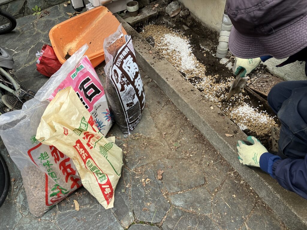 植付前に土壌改良を行います。